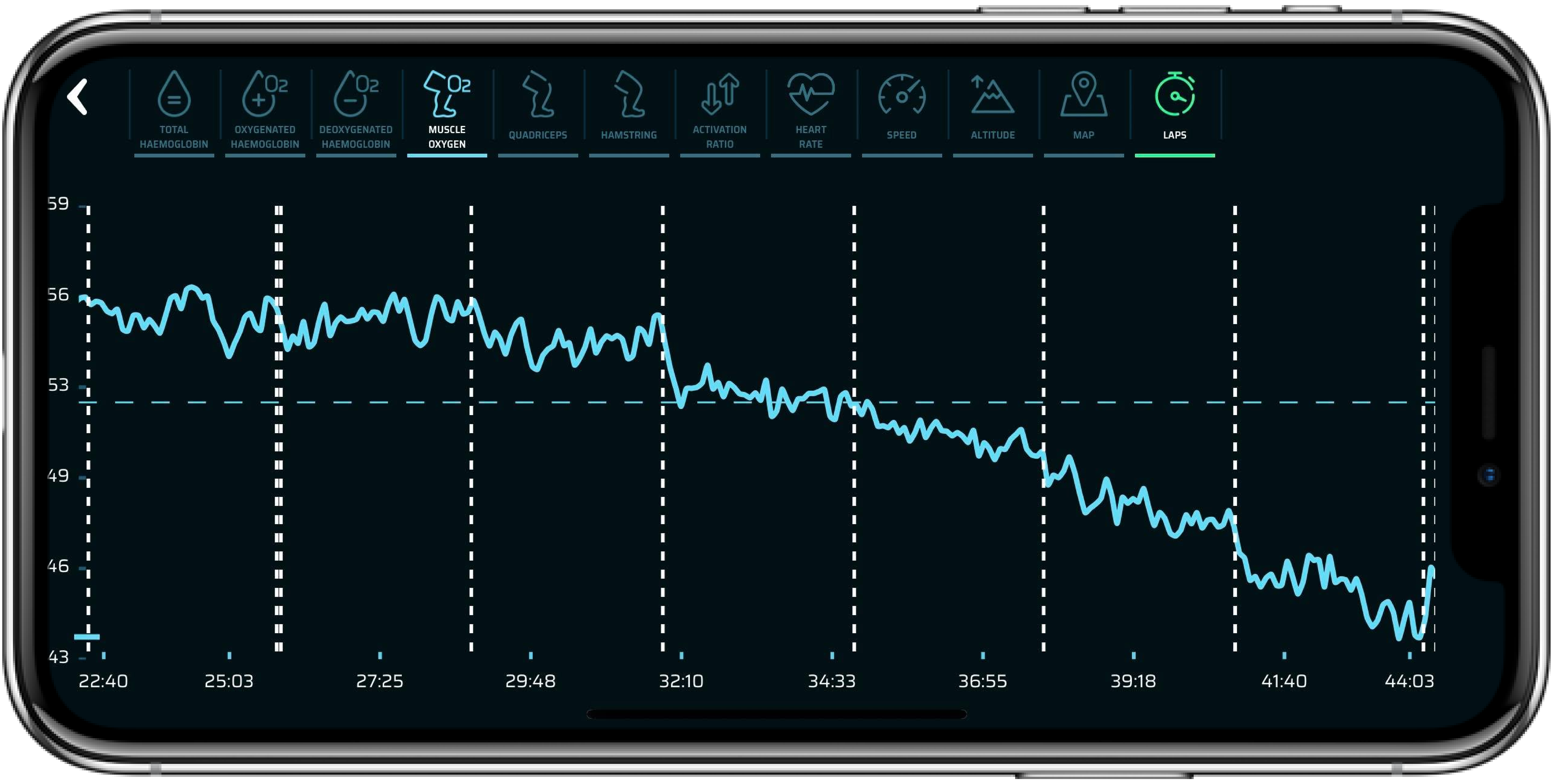 It’s just as you might know from training based on pace – but instead of running between two times eg., 4:30-4:20, you run based on muscle oxygen, eg., 54-50%. Which means you don’t have to plan a flat route for efforts.