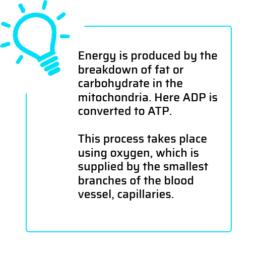 GRASPOR measures the oxygen saturation in your muscles. Oxygen levels in the muscles are critical because oxygen is essential to produce energy in the muscles. Without oxygen, the muscle can only produce energy for a short duration of time. This also means that you stress you muscles with a high load if you work with low oxygen. Therefore, knowing the oxygen level is very useful.